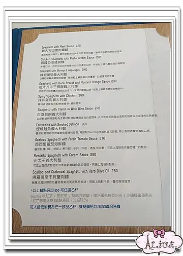 4/1(二)DAZZLING CAFE玳思琳蜜糖土司 高雄市前鎮區三多三路 213 號3F(新光三越百貨三多店) 07-3329090 營業時間:11:00~22:00(Last order 21:00) ◎有客人候位狀況下,用餐時間1.5hr (無客人候位將無用餐時間限制)4月1日愚人節前一天,高雄下大雨,原本還擔心今天一樣是陰雨的天氣,還好今天雖然是陰天,但沒雨DAZZLING CAFE全省目前共有九間,上海也有二間分店,現在就連香港也要開分店了個人覺得餐點的樣式有點像是跳舞香水,有蜜糖土司和義大利麵....等的複合式餐飲櫃台有賣自家商品,杯碗、手提袋、馬卡龍 還有一台可愛的爆米花機 餐廳裡頭的座位很多,平日的今天約八成滿,生意很不錯訂位時,服務生說只能訂整點,問了提早到可以入座嗎?答案是可以,那整點的定義真的太制式了啦!這一區服務生說不開放,也許假日人多時會開放吧!(猜) 二人套餐的主餐只有一道,四人套餐的主餐也只有三道,心中納悶這是給小鳥胃的人吃的嗎?本以為義大利麵的份量也許是雙人份(大份量),結果也不是,看了下面的註解才瞭,原來如此丫!加點義大利麵每份可折50元,加點蜜糖吐司每份可折20元,唉丫丫!就是要客人加點啦! 杯墊也有專屬的設計 四人套餐可選140元以下飲品,超過居然不能補差價,規定真硬丫!左至右→黑醋栗香澄冰茶、冰釀蜂蜜蘋果茶、奇異果冰茶 140元+10%(單點)都是以綠茶為基底,再加入切丁新鮮水果,糖度固定不可調整,不會很甜 咖哩鮪魚熱三明治180元+10%如不想吃正餐,還有熱三明治可選擇喔! 黑色幽默蜜糖土司240元+10%(酥軟、正常、酥脆)份量很大2~3人一起分享較佳,如一個人吃完會太膩烤的微酥的土司磚配上卡士達醬和巧克力冰淇淋好好吃但唯一缺點是料太少,草苺只有二顆,售價240元有點貴,還是燒茶實惠 巧達蛤蜊湯110元+10%(單點)濃湯非常燙口,滋味還不錯蕃茄蔬菜湯110元+10%(單點)水牛城辣雞翅110元+10(單點)四隻雞翅疊疊樂,酸酸辣辣很過癮,吮指回味地中海式菌菇炒鮮蝦230元+10%(單點)說實在價位還真是不可愛,單點價加上服務費都可在點份義大利麵了炒過的蘑菇和二隻蝦,份量不多,要不是點套餐,很難出得了手青醬奶油雞腿麵240元+10%(單點)醬汁味道還不錯,雞腿煎烤的表面恰恰,光看就很加分佛羅倫斯干貝蟹肉麵280元+10%(單點)以清炒的方式呈現,雖然干貝只有一顆,蟹肉腳也只有四個,但是好吃的無誤啦!XD 明太子義大利麵280元+10%在網路上看別人介紹都很推這道,當然要點來嚐嚐囉!果然滋味不是蓋的,好吃~巧克力香蕉可拿滋190元+10%(單點)份量很迷你可愛,友人說可拿滋吃起來很像是西式的炸油條 最後來個香蕉太陽花做ENDING,哈哈~DAZZLING CAFE的餐點都還滿好吃的,服務也不錯,只是價位不可愛了點環境不知道為什麼有點吵,訂位時講電話就像在美食街的吵雜,來到餐廳也是耶!本該是在挺夢幻的餐廳用餐的,卻有點像是在熱炒餐廳的人聲鼎沸查看更多