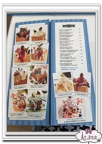 DAZZLING 蜜糖吐司,隔了一個月我又來了!!!!!!!請大家參考初訪。。。。>: 因為比較好吃~~~ 內容比較詳細。這篇我直接切入主題。莓果海洋蜜糖吐司 (OCEAN 限定) NT270元。這次因為姐妹從外地來~~~ 所以想說點一個高雄店限定的~~~ 結果!!! 失望了。看起來很美。但全都是鮮奶油!!!! 鮮奶油啦~~~~~ 老實說~~~ 播開這些濃厚的鮮奶油~~~ 裡面的蜜糖吐司還是不錯吃啦!!! 不過即然是限定,為什麼要搞成這樣呢????? 很胖耶。。。而且很膩>草莓奇異果可拿滋 NT190元。這個蠻迷你的。。。2個人SHARE剛剛好。有點像酥炸可頌的甜甜圈版。。。非常好吃!!!但很油哦~~~~幸好我們點草莓奇異果!!! 可以去油。。。卡士達醬好好吃~~~配上酸酸甜甜的草莓跟奇異果。。。我們都比較愛可拿滋啦。。。。可拿滋好酥脆!!配上旁邊的冰淇淋~~~ 真的太優秀了!!!!!! 秋煥葡萄果香冰茶 NT160元。新鮮水果是先放在杯子裡的~~~~~這個蠻好喝的~~~酸酸甜甜的~~~洋甘菊荔枝蘋果冰茶 NT160元。水果好像是蘋果/鳯梨。這杯喝起來洋甘菊味很濃~~~ 比較清爽一點!!!!! 大馬士革玫瑰茶 NT160元。就是有玫瑰香氣的茶啦~~~可以回沖哦~~~查看更多