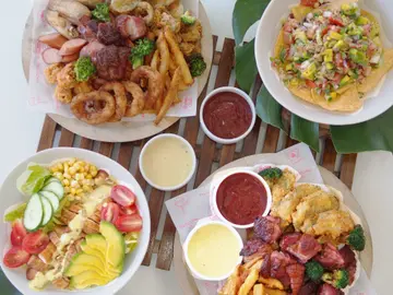 高雄店全新店裝融合海洋風情及暖色系南島叢林風呈現,門店前幾株高矮仙人掌及幾何地磚風格仿若環繞於沙漠綠洲中,為因應高雄日益增加的親子用餐族群,特地將包廂空間改為環境友善的親子休憩區,以地毯軟墊鋪蓋於地板表層,讓爸媽不必擔心小小孩摔跤受傷,擴增全幅黑板及無毒粉筆讓孩子恣意地揮灑腦中創意,此外也新增童書區、學步車等遊憩設施,並特地為孩子們打造客製化兒童餐,減低鹽、糖及辛香料使用量,讓孩子吃得開心,爸媽也安心。即日起,OpenRice開飯喇 ,提供24hr線上訂位服務,立即訂位享用美食吧!