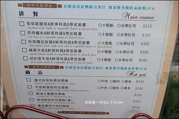本著識食、食是經營理念的【W Kitchen】,從麵包、湯品、果醬、醬汁到優格等大小配料,以及所有餐飲均由主廚精心製作而成。今天來到這裡主要是為了吃「超級夢幻季節限定哈密瓜水果鬆餅」而來的,半個哈密瓜裡一球球的哈密瓜果肉和鬆餅堆疊成小山,從水果到鬆餅每一樣做工都很細緻,美味度真是沒話說!超級~美~味的夢幻鬆餅啊~由於老闆娘堅持美味,使用最新鮮的水果,所以客人到才會開始製作,但等待是值得的,因為實在太好吃了!!!!每日限定「超級夢幻季節限定水果鬆餅」(哈密瓜or草莓)提醒前往用餐的朋友們,要記得先電話預訂喔!歐式鄉村風格,下午2:00(三)抵達W Kitchen。店內已經接近客滿,還有日本旅客在這消費。讓小羊兒在還沒體驗,就已經對食物信心十足了!店內也擺上過年氣息的擺飾囉!W Kitchen是ㄧ間支持台灣原產水果的餐廳因為對水果的情有獨鍾催生了這一家水果概念餐館除了自家種植的芒果、鳳梨更產地直送其他台灣安全的蔬果。簡單優雅的用餐環境南瓜濃湯香甜濃郁的南瓜湯頭,吃的到煮的熟爛的馬鈴薯。湯頭上面撒上一點羅勒葉,能喝到特別的香氣。熱煎法式厚吐司&鮮果時蔬佐歐姆鮪魚蛋法式吐司淋上一點蜂蜜醬,吃起來口感柔軟帶有香甜的好滋味。鮮果時蔬沙拉,使用多種水果(地瓜、南瓜、柳橙、香蕉、芭樂、葡萄柚、玉米筍、蓮霧、蘋果、奇異果、棗子等)搭配時蔬在淋上芒果柳橙醬,鮮甜的水果與時蔬整個就是讓人讚不絕口的,用料實在太物超所值了!!!歐姆蛋裡面有添加紅、黃青椒+洋蔥+起司,滑嫩的口感真的好美味。超級夢幻季節限定哈密瓜水果鬆餅要吃的時候先從哈密瓜球開始吃,後面的牙籤拔掉之後快點把鬆餅拿下來切。哈密瓜內有放冰淇淋跟橘子是當季的水果,哈密瓜外皮有先冷凍過,不建議食用。鬆餅外觀其實是個大愛心,超適合情侶點一份來吃的。但這不是重點,重點在於烤的酥脆的鬆餅,由於添加芝麻、麻糬吃起來很香。因為拍照的關係放到冷掉了,依舊還是很美味。切一塊鬆餅,沾點奶油跟冰淇淋都很棒,哈密瓜吃起來也很鮮甜。享用鬆餅的盤子到小叉子都很精緻,除了附上一個大盤子放大鬆餅外,還有兩個小碟子跟小叉子,讓你放置哈密瓜球,細細品嘗這之間的美味。細膩之處,讓人感受很深刻!鳳梨、芭樂、紅肉火龍果、百香果、蘋果、芒果特製的綜合水果汁。水果茶主要是用新鮮水果熬煮的糖漿去做調味,口感層次豐富,口味獨特。詢問老闆娘使用哪些水果(鳳梨、蘋果、百香果、柳橙等...)聽到最後只知道,”用心“這兩個字帶過了~~店家堅持採用產地直送且檢驗合格的新鮮食材現點現做,以呈現最有溫度的餐點,所以來這裡用餐要耐心等候唷~店內以藍白色系、充滿南法鄉村風情為裝潢主軸,讓每位顧客都能身處在那舒適又放鬆的氛圍之中,也間接讓等候成了另一種享受!…查看更多