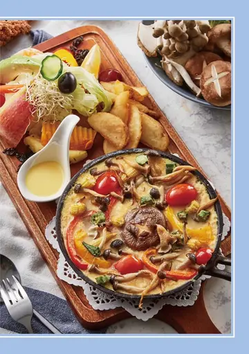 水 / 水果茶 / 牛奶 鍋 / 奶茶 / 白酒蛤蜊義大利麵 / 咖哩手工雞塊丼飯 / 青醬雞肉焗烤飯 / 南瓜蕈菇濃湯 / 魚柳條 洋蔥圈 炸物雙拼 / 超級夢幻哈密瓜鬆餅 / 辣味奶油雞肉義大利麵 / 超級夢幻哈密瓜限定鬆餅 / 唐揚起司鮮蔬鬆餅 / 法芙娜香蕉布朗尼鬆餅 / 招牌水果焙鍋鬆餅
