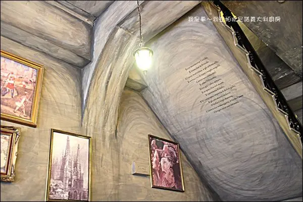 餐廳內部裝潢很特別,第一次看到像3D立體畫的牆壁,週六中午生意很好,假日建議要訂位。二樓還有座位,我只拍一樓意思一下。