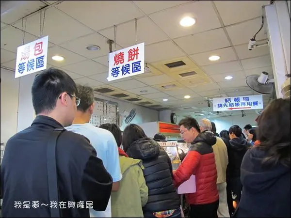 隊伍分兩列,一是排湯包,二是排燒餅,不過我覺得動線滿奇怪的,如果只有一個人來買,想吃湯包和燒餅,難道要分兩次排嗎?