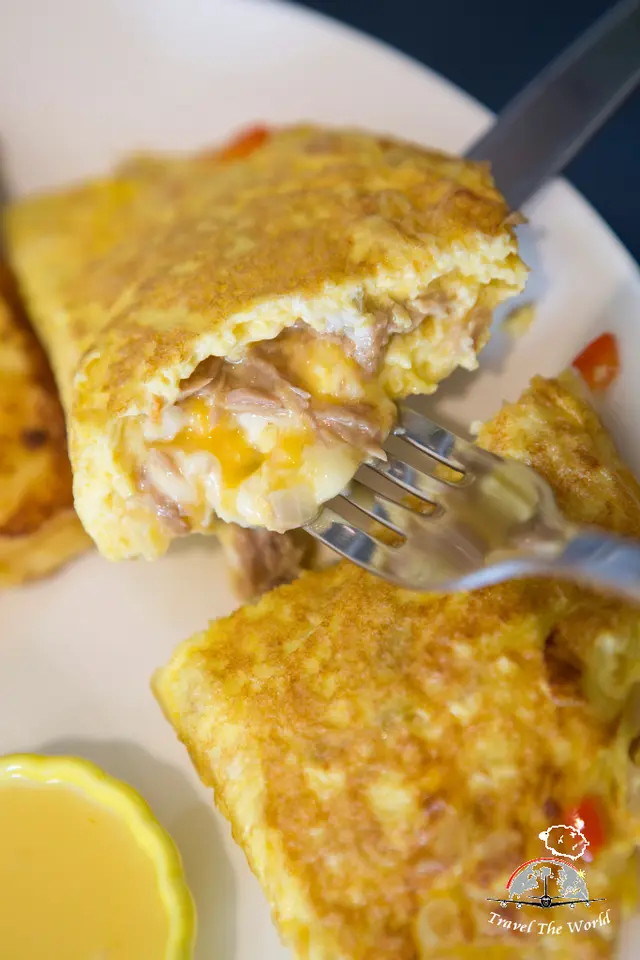 歐姆蛋裡面有添加紅、黃青椒+洋蔥+起司,滑嫩的口感真的好美味。