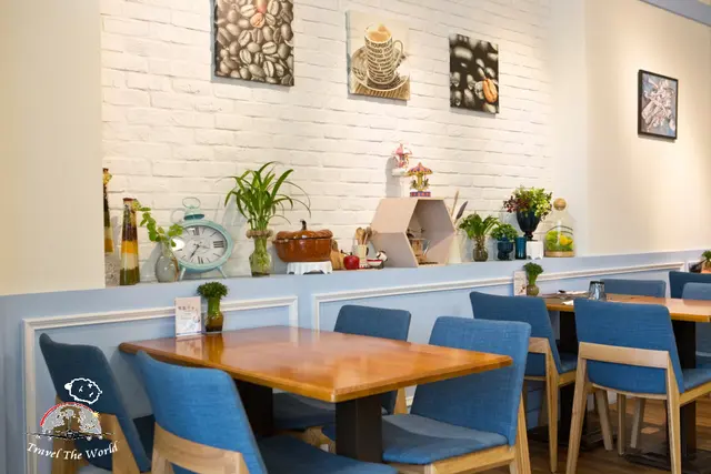 店內以藍白色系、充滿南法鄉村風情為裝潢主軸,