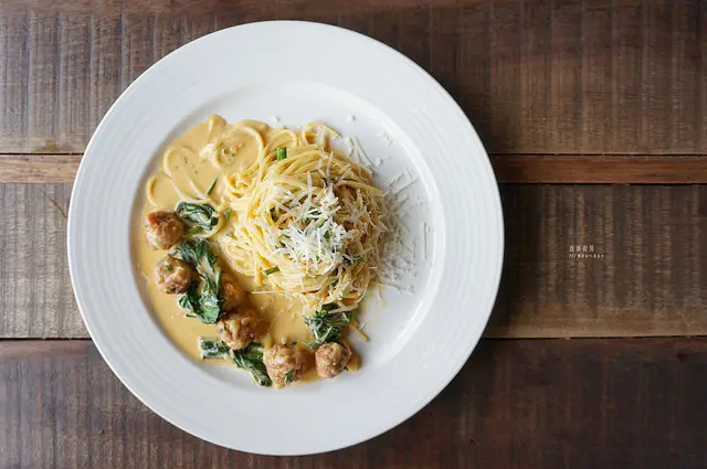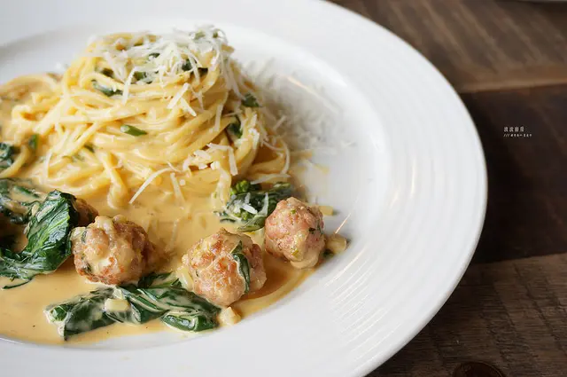 波波廚房的香腸為手工自製,點了份香腸肉丸義大利麵來嚐嚐