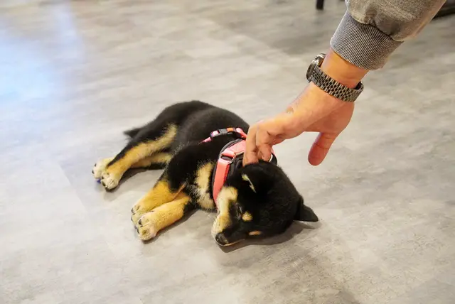 小柴犬的無辜眼神讓人無法抗拒啊!連M先生都忍不住從頭摸到尾,拿著手機拍不停