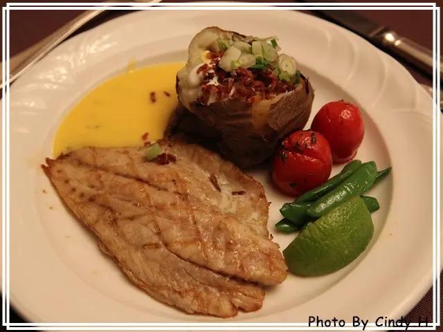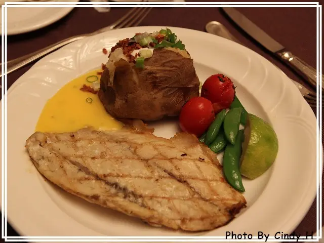 爹娘就是爹娘,為了讓孕期的我吃肉也吃魚,兩人都點了魚當主餐,然後分了一大半給我,害我飽到不行!而鱸魚搭配的海鮮醬很棒,讓微乾的鱸魚加分不少~