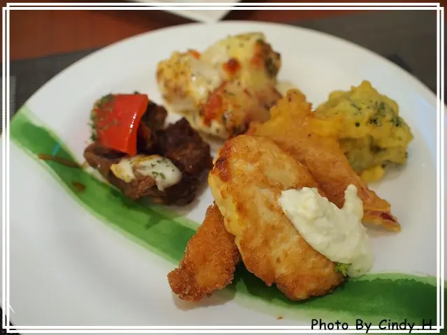 至於以下就是自助區的餐點了,總共五人份只夾了以下這些,東西少之外味道也差又不新鮮,難怪被罵翻 (其實這應該可以說是廣告不實了吧,跟打出來的品質形象差太多)