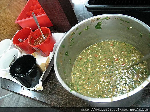 這個醬料可以沾白肉吃~可是呢,看起來顏色很深,其實沾起來味道淡淡的