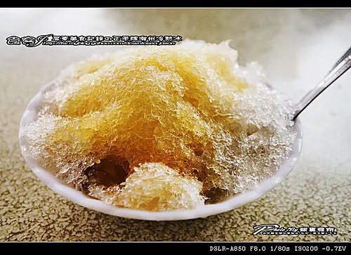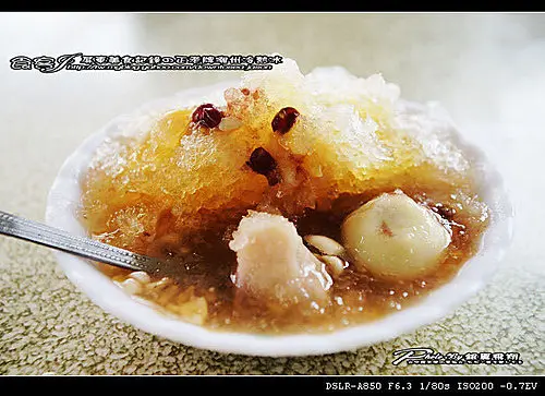 正老牌潮州冷熱冰,所謂冷熱冰,是以芋頭、大小湯圓、花 生、糯米、紅豆、綠豆蒜等熱騰騰的配料為底,再覆上一層 清涼刨冰,最後淋上白砂糖熬煮的香醇糖水而成。根據老闆 的建議,吃冷熱冰的秘訣,必須用湯匙由旁邊往下,挖點料 吃,或配點冰來吃,切勿攪拌,才能品嚐到真正好吃的冷熱 冰精髓。因為料熱冰冷、忽冷忽熱、外Q內軟,吃起來的口 感非常特別。