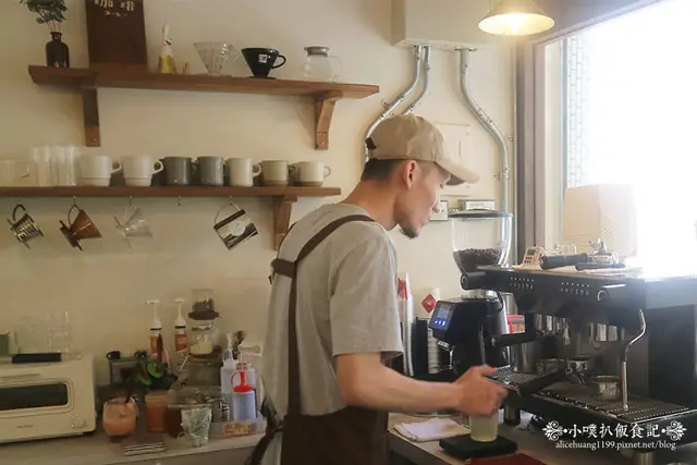 今天天氣十分晴朗,南台灣的天氣就是如此熱情,陽光自然的灑進店內,老闆專業的研磨咖啡,此時飄出香氣濃郁的咖啡香,好一幅悠閒自在的畫面