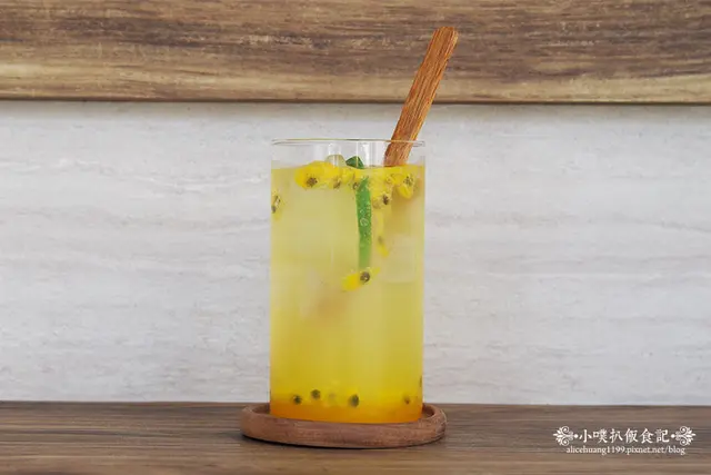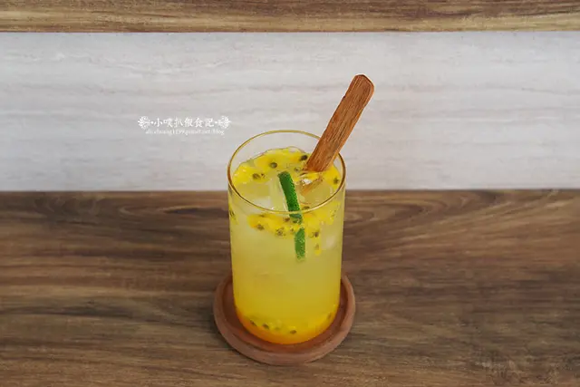 適時的攪拌均勻,隨著氣泡的清爽滋味,搭配柳橙、百香果的酸甜果香,實在很清新爽口