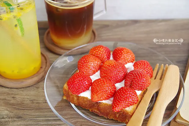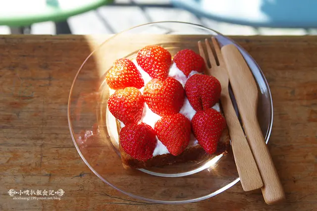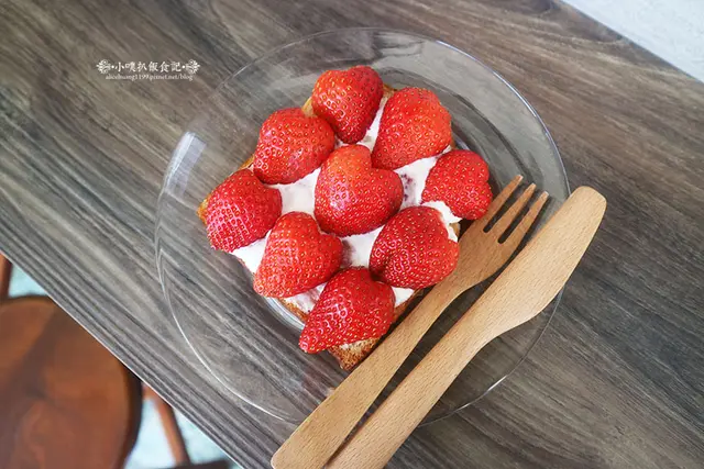 草莓大顆又香甜多汁,厚片吐司烤製外層酥香,內層充滿軟香的口感,搭配的滑潤順口的鮮奶油,相當美味