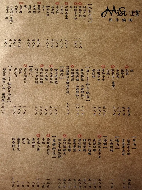 Mist迷霧和牛燒肉的價位以燒肉來講算是中高價