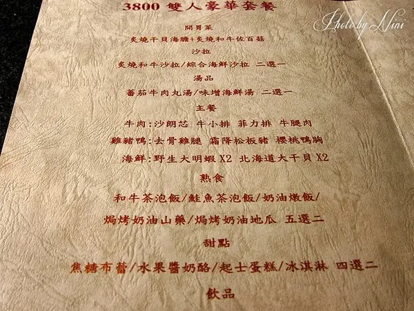 主餐:醬燒骰子牛、紐約紐約、櫻桃鴨胸、玉米鬚筍