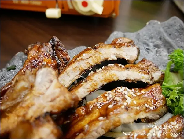 豬肋排塗抹的醬汁吃起來甜而不膩,外皮烤的微乾吃起來有點脆,肉還帶著些許的肉汁