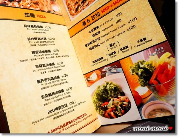 再來是披薩價位200元~300元、湯60元和沙拉100元,果真還是高雄好,價位親民,食物分量也很足夠。