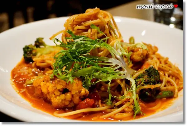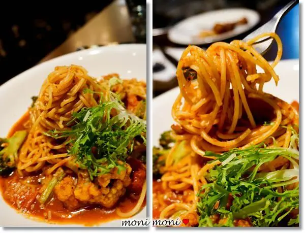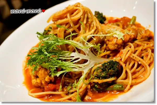 番茄的醬汁很純,可以喝道完整的番茄湯汁,麵條也很Q ,再將花椰菜以及綠色蔬菜點綴在旁,整道麵食變得很漂亮。