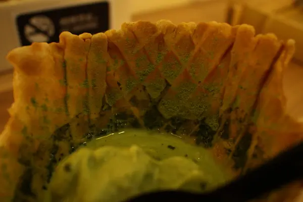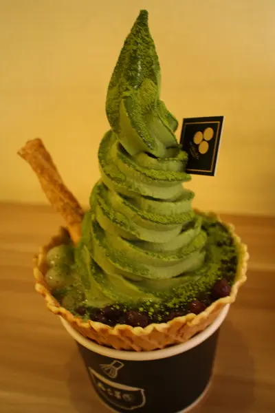上頭撒滿細細的宇治抹茶粉 勿吸否則會嗆到!