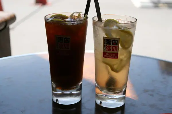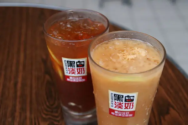 飲料採用黑白淡奶的杯子裝,也很有港味..