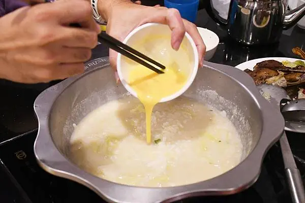 加入了蛋液與白飯後熬煮一段時間就可以變成極度美味的雜炊