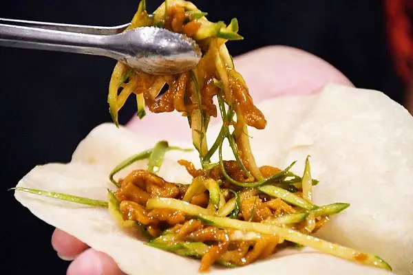 不失京醬的滋味,扎實細緻的肉絲包覆入餅皮之中,不僅在口感上多了幾分韌度,在味道上更是多了幾分餅皮香
