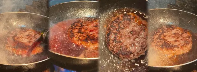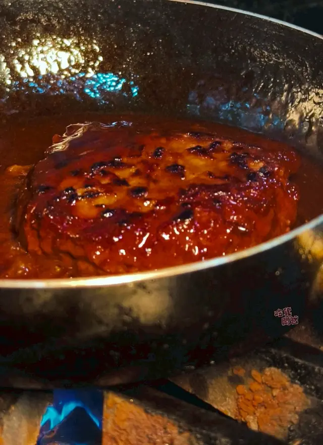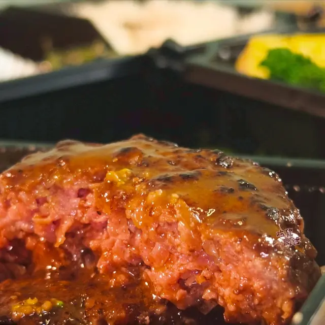 和暖的牛肉漢堡排口感吃起來紮實且多肉汁..