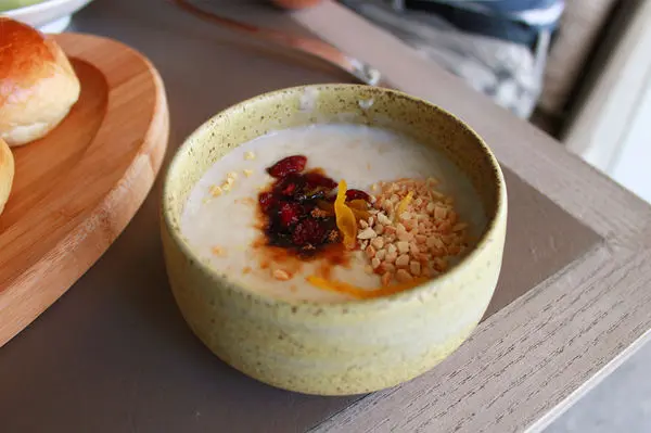 主食粥,雖然粥是中式,但配料又相當西式,吃起來變有點甜味的粥,口味很討喜