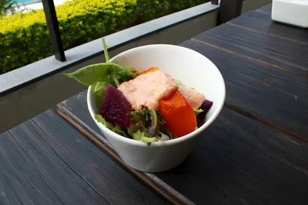 蔬菜水果沙拉,醬汁也是特調的,有水果風味