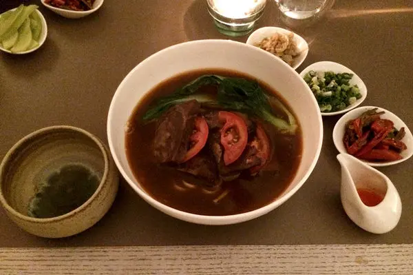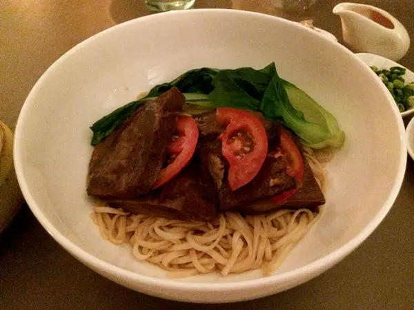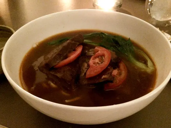 後來點了番茄牛肉面來吃,貴鬆鬆的牛肉麵上菜的時候是沒有湯的喔,服務員會協助倒湯,感覺好高級XD
