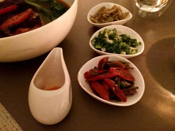 然後是佐料,可以直接加進湯頭裡面的辣椒、蔥、酸菜、辣油