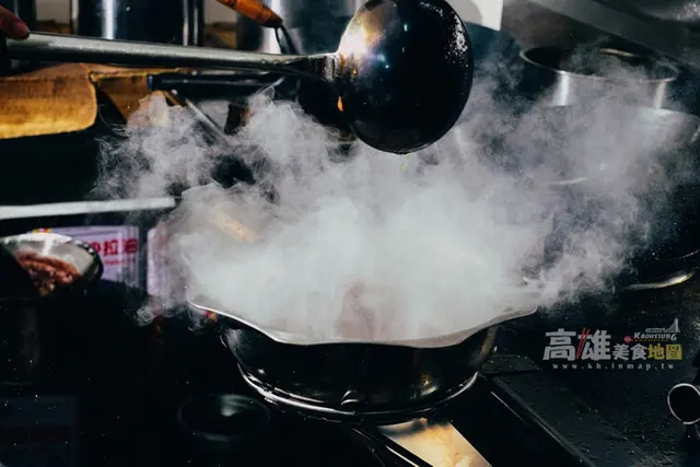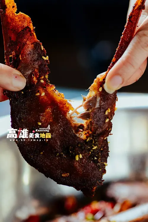 ▼最後缺一不可的步驟:淋上熱油嗆鍋,所有的滷香、醬香、油香、肉香之嗆、麻、鮮、香,全都在這一刻交織融合在一起,乾鍋鴨頭至此才算是大功告成!