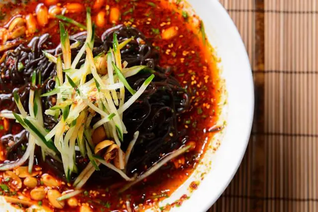 這也是一道開胃涼菜,蕨根粉在台灣餐館是較少會見到的食材,它是從蕨菜的根部提煉出來的澱粉,乍看會以為是粉絲,但口感卻比粉絲更有韌性咬勁。大宅門的蕨根粉是蘇姐特地從大陸找到她認為最好吃的蕨根粉,堅持一定要將它帶回台灣。