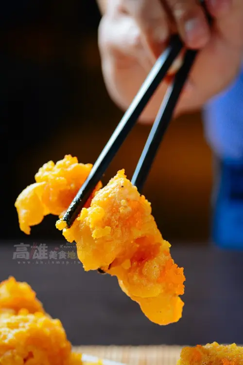 ▼一顆顆金沙細緻的裹附在中卷上,酥脆酥脆的口感一定要趁熱食用
