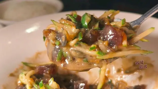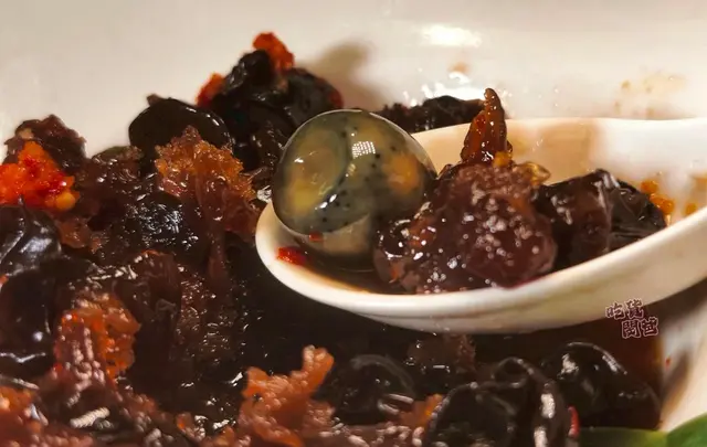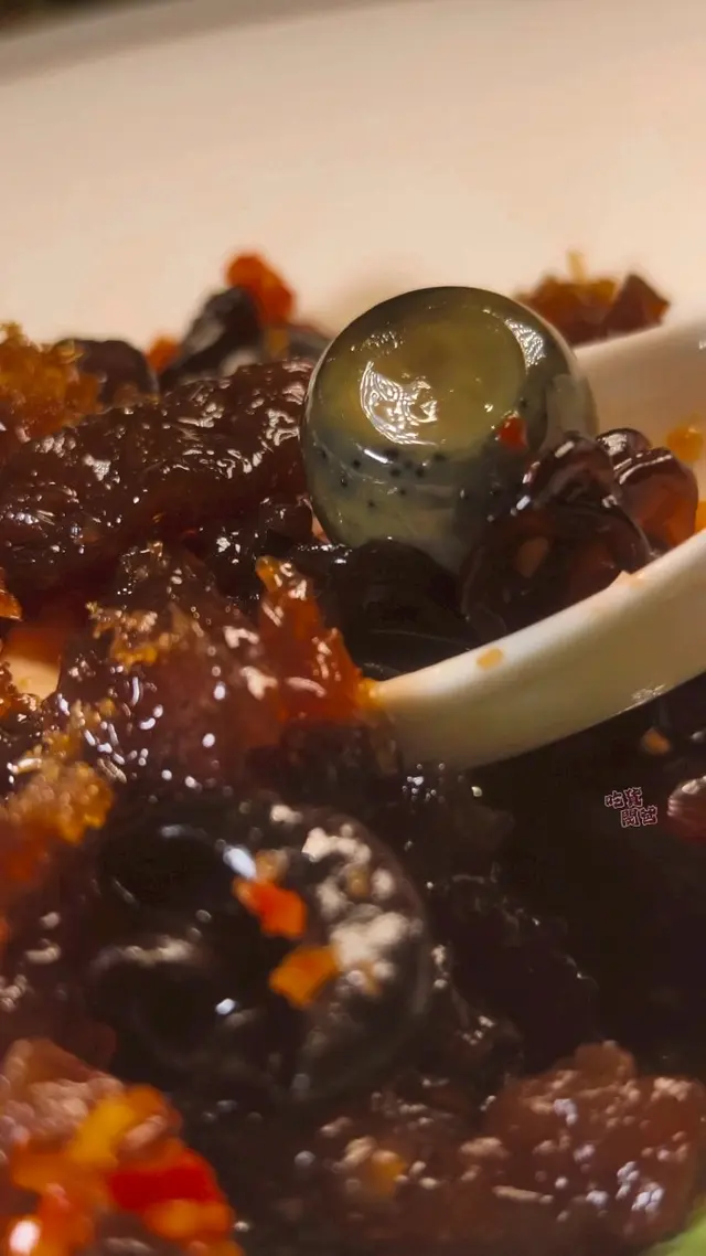 混搭海蜇頭和剁椒,吃的是海蜇的爽脆、剁椒的鹹辣香氣,很可以,這小皮蛋吃起來也很讚!