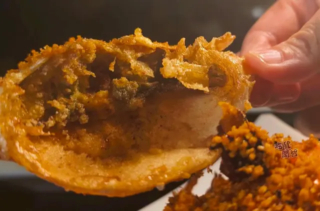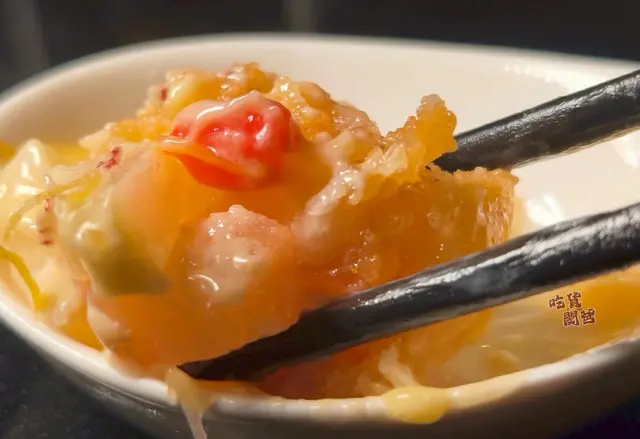 大宅門乾鍋鴨頭的這個蝦餅,口感是外酥內Q彈呀!