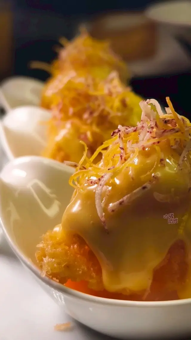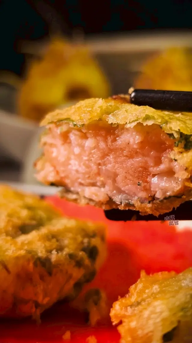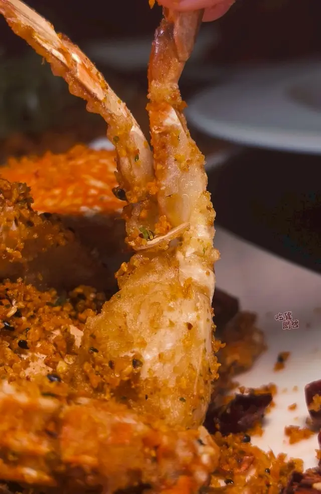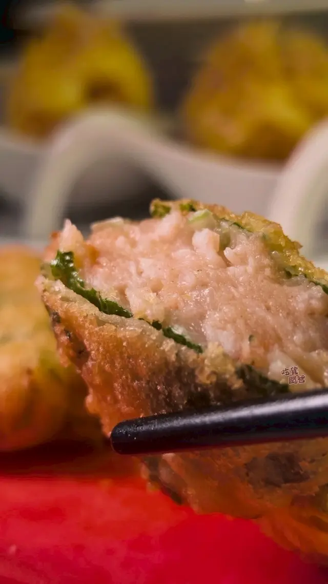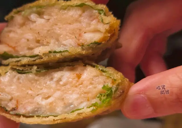 包覆在裏頭的蝦漿吃起來彈牙,吃到蝦肉的脆,麵衣酥香脆,一口咬下去會卡滋卡滋,療癒啊!