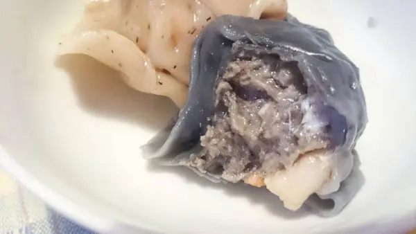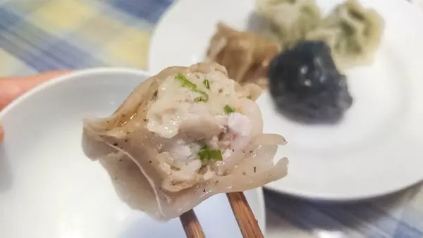 四種口味的水餃似乎不分軒輊呢! 不過最顯眼的當然是黑色的墨魚水餃,就先來嚐嚐這口味吧!
