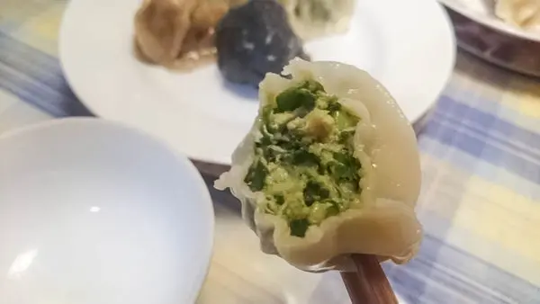 為什麼呢? 這韭菜餡剁得很細緻,完全不會有韭菜切太粗刮嘴的問題。
