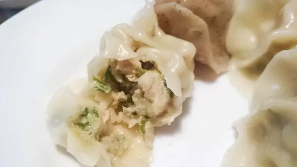水餃皮很有彈性,內餡綿密,一口咬下不易散開掉落,三鮮系列有包鮮蝦唷! 的確是很飽嘴的水餃。