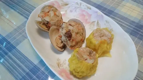 分別是魚子燒賣、蚌殼鮮蝦燒賣,看到蚌殼我忍不住笑出來,怎麼這麼有趣啊這玩意兒,