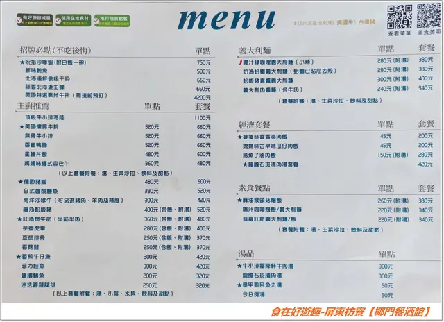 從網路上的資訊得知,這家【椰們餐旅-枋寮海景餐廳】最吸引人的就是那擁有180度視角的玻璃屋景觀用餐區,欣賞海景,美拍,外加美食,這樣的享受可不是天天都有,不過,本想好好拍好拍滿的,誰知當天又碰到餐廳二樓以上不開放,只能說平日出遊就是有很多不可控的事發生,唉~~