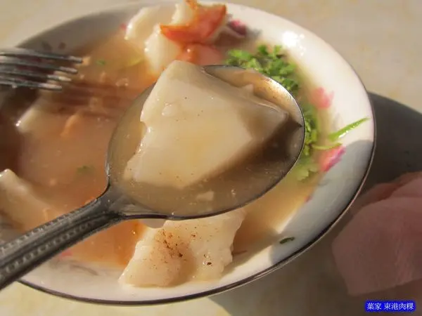 用虱目魚骨下去熬煮的羹湯喝起來除了有高湯味道之外,東港盛產的櫻花蝦自然也是碗中之物