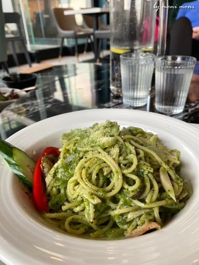 而椰們的青醬義大利麵倒是挺出色!即使在我們一陣談笑間而冷掉的麵條,仍不會感覺到厚重的油膩感,