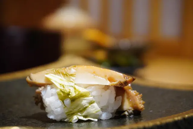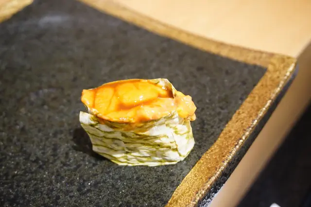 兩種頂級的食材結合在一起, 抹上海膽外層,