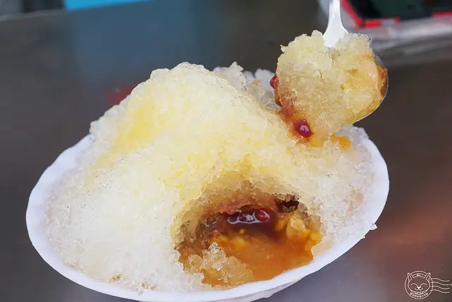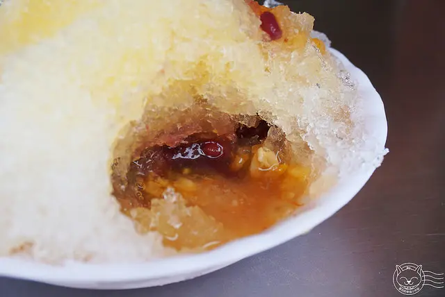覆蓋一層厚厚的剉冰,再淋上糖水,冷熱碰撞的滋味~一生一定要嚐一次!!