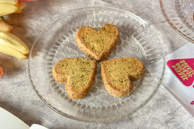 超可愛的愛心餅乾以法國瑪黑伯爵茶來入料,細細咀嚼可以享受到獨特的茶香蔓延開來,加上法國鹽之花,吃起來鹹甜鹹甜的,餅乾因為糖粒的關係更加脆口,喜歡茶類甜點的朋友會喜歡。