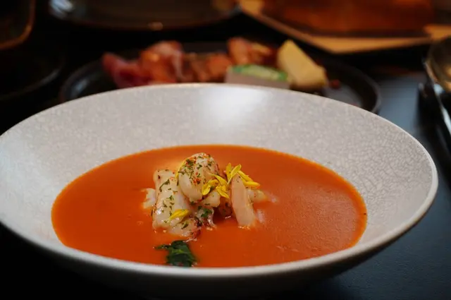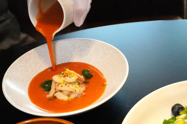 蟹肉上桌後再淋上濃郁的番茄濃湯,