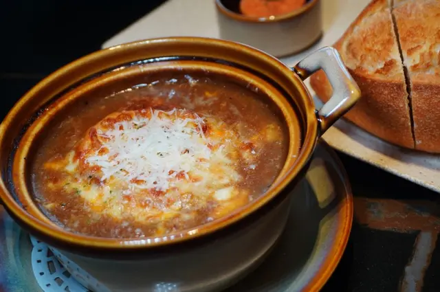 洋蔥湯本身的鹹度還蠻高的, 加上滿滿濃厚洋蔥的香氣